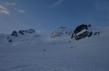 Von der Chamanna Coaz (2.610 m) über die Moräne und südwärts auf den Vadret da Roseg bis in die Mulde östlich von P. 2.932. Querung nach SO unter den Sporn des Nordgrats des Piz Glüschaint und in einem Links-Rechts-Bogen durch die Spaltenzonen und die Gletscherbrüche hoch auf die Ebene zwischen La Sella und Piz Glüschaint. In einem weiten Bogen nach rechts an den Fuß der Ostflanke. Skidepot und dem Grat entlang auf den Vorgipfel, kurzer Abstieg in eine Scharte und über den oberen Nordgrat zum Hauptgipfel. Im Abstieg kann von der Scharte abgeseilt und direkt in einem Firncouloir abgestiegen werden. Abfahrt entlang der Aufstiegsroute zur Hütte, Aufstieg zur Bergstation Corvatsch und über die Piste nach Surlej.