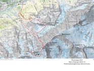 Von Gletscherstafel ca. 200 m nach O und über die Brücke die Lonza queren. Dann nach S, später SW auf Wegspuren aufwärts. Bei ca. 1900 m wendet man sich Richtung SO und steigt im Bereich der Horloibingräben steil zum P. 2336 m hinauf. Von dort nach SO in das Gebiet von Tierweng und weiter zu einem Plateau auf ca. 2765 m (Biwakplatzoption) unter den Gletscherspitza, ca. 100 m östlich vom P. 2784 m.