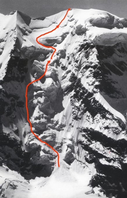 Im unteren und mittleren Teil entlang der Route von O. Feutl und W. Dobiasch (1931), im oberen Teil Direktausstieg auf den Hauptgipfel des Piz Palü.