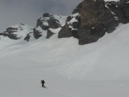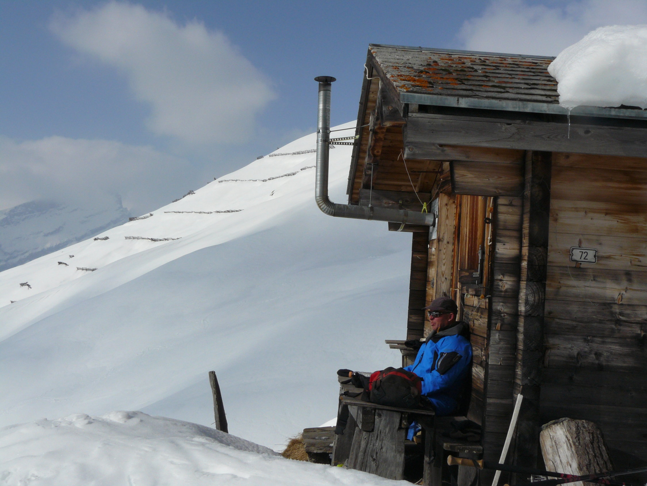 Start im Dorf Medels (1550m, durch das Dorf bis zum Schollabach, dann links (westl.)des verbauten Baches direkt hoch zu den Alphütten P.2008. Weiter zur oberen Hütte P.2216. Von hier westwärts unter den Felsen Richtung Gipfel. Auf 2600m nicht zu den Lawinenverbauungen hoch, sondern rechts (östlich) zwischen den Felsen sehr steil hoch zum Grat und zum Gipfel. Ev. Steigeisen und Pickel erforderlich, je nach Verhältnissen. Nur bei sehr sicheren Lawinenverhältnissen empfohlen. Abfahrt gleiche Route. P.S. Tour auch lohnend ohne Gipfel, da von 2600m bis ins Tal sehr schönes, offenes Skigelände.