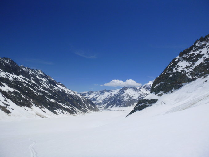 Zustieg: vom Grimselhospiz Richtung Lauteraarhütte, weiter zuerst auf dem Unteraargletscher, dann auf dem Lauteraargletscher bis auf P 2800, dann Weg durch das Spaltenlabyrinth Richtung Nässijoch.