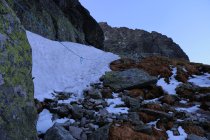 Kôprovský štit (2367m)Tramway-Haltestelle Popradské pleso (1250 m) - Popradské pleso (1355 m) – Mengusovská dolina – Vel´ké Hincovo pleso (1946 m) – Vyšné Kôprovské sedlo (2180 m) - Kôprovský štit (2367 m) – retour Tramway-Haltestelle Popradské pleso (1250 m)