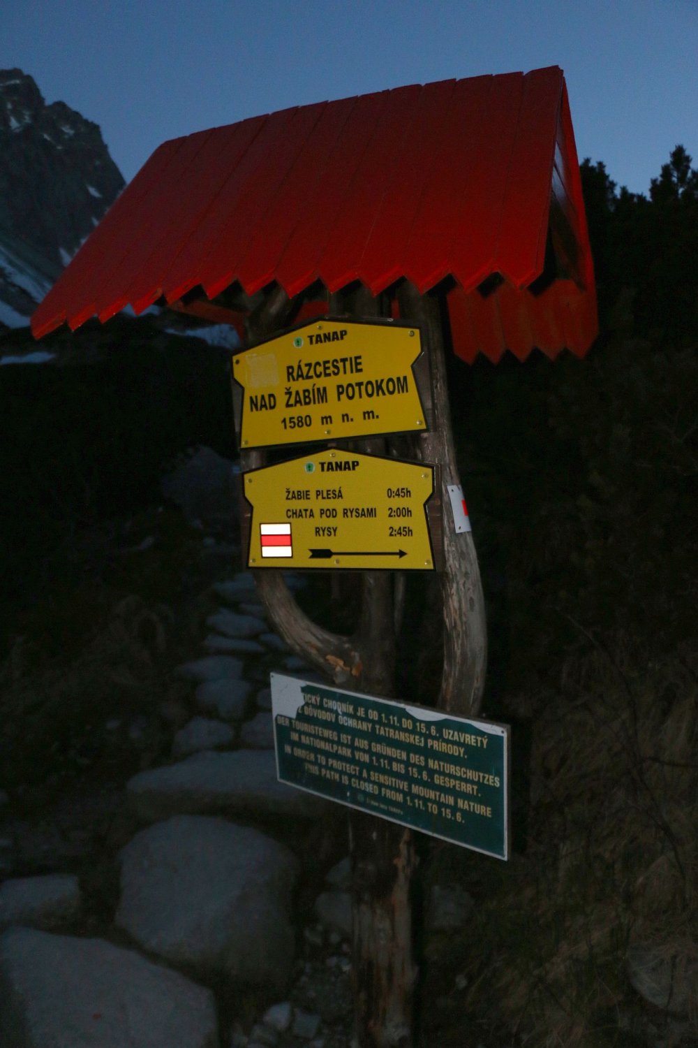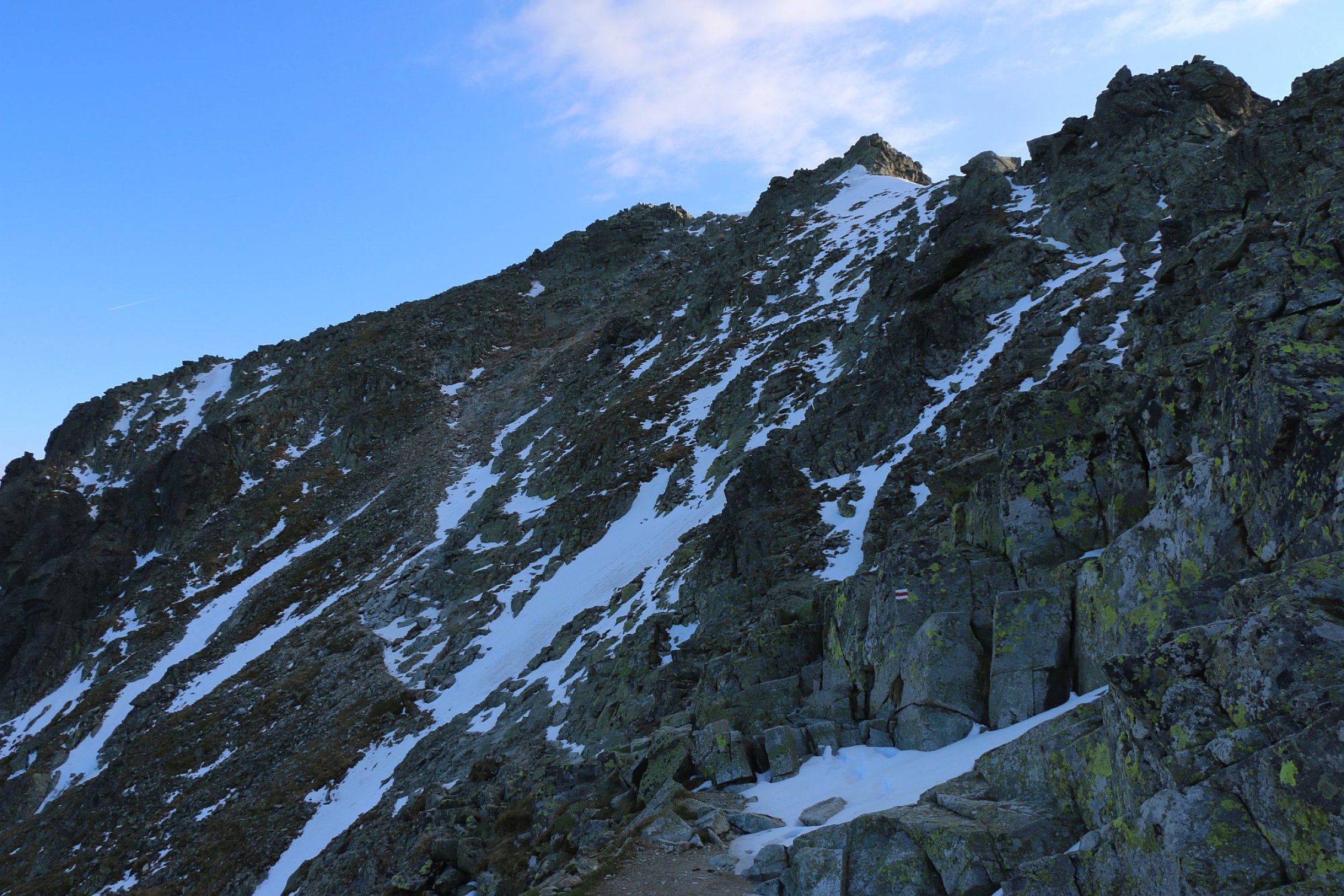 Der schön angelegte Bergweg ist von Štrbské Pleso ist mit Wegweiser und rotweiss aufgemalten Strichen bestens markiert. Offziell darf der Berg nur vom 15.6 bis 31.10. bestiegen werden.
