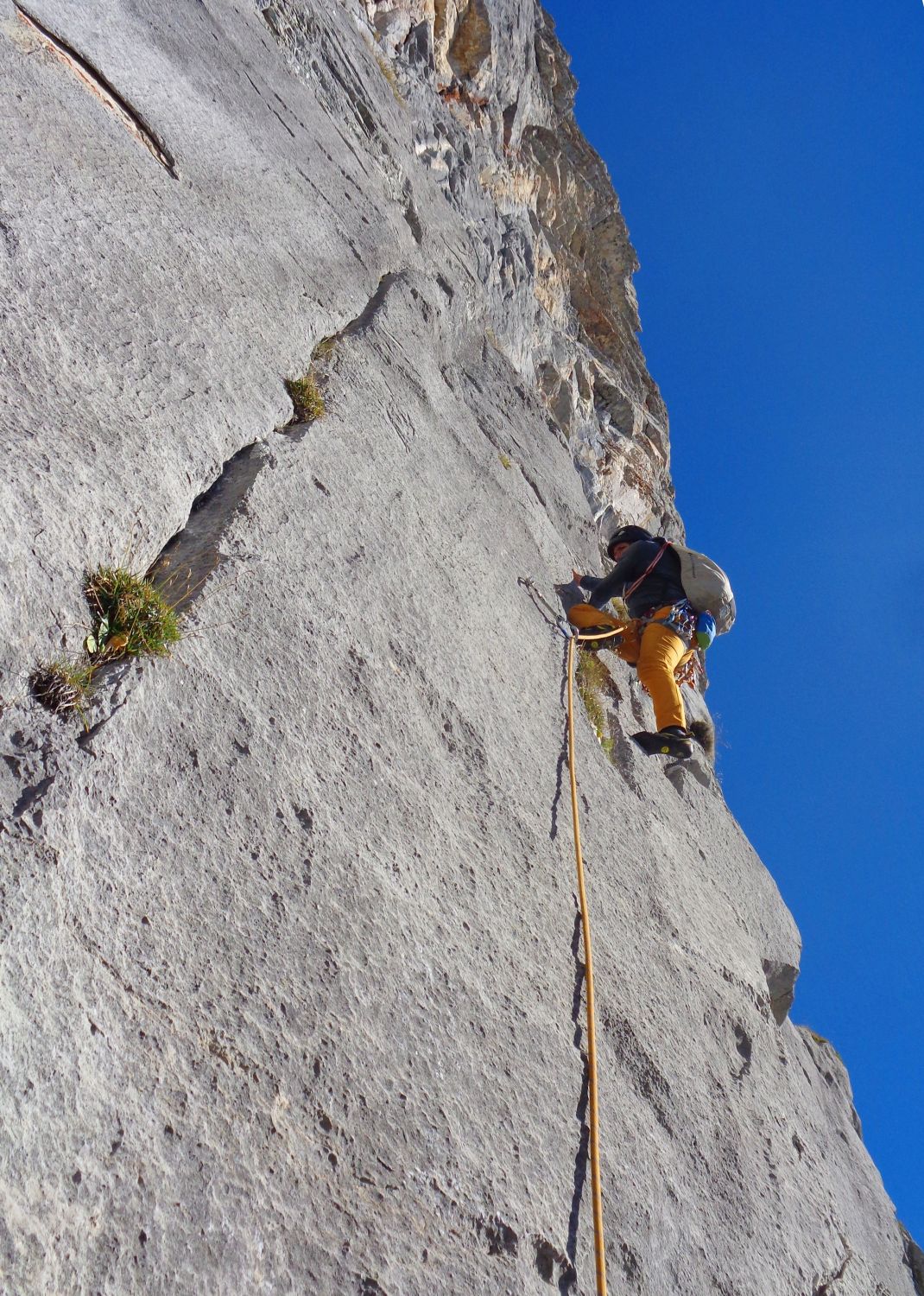 Trotzt der für die Gegend guten Absicherung (nicht Plaisir!) müssen etliche schwere Stellen zwingend (zwischen den Haken) geklettert werden.