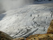 Auf dem Westgipfel gibt es eine fotogene, luftige Abseilstelle auf den Stäfelfirn.