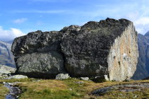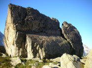 Freistehender, knapp 10 Meter hoher Quarzporphyrblock mit elf sehr gut abgesicherten Routen.