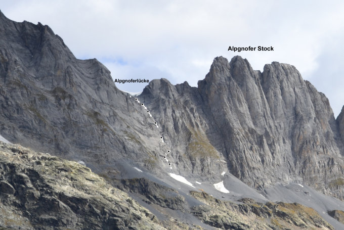 Zustieg zur Abseilpiste über Ruchenfirn zur Alpgnoferlücke. Markierter Orientierungshaken. Nach dem Abseilen über viel Geröll und ev. Schneefelder in südwestlicher Richtung über P.2271 zur Windgällenhütte AACZ absteigen.