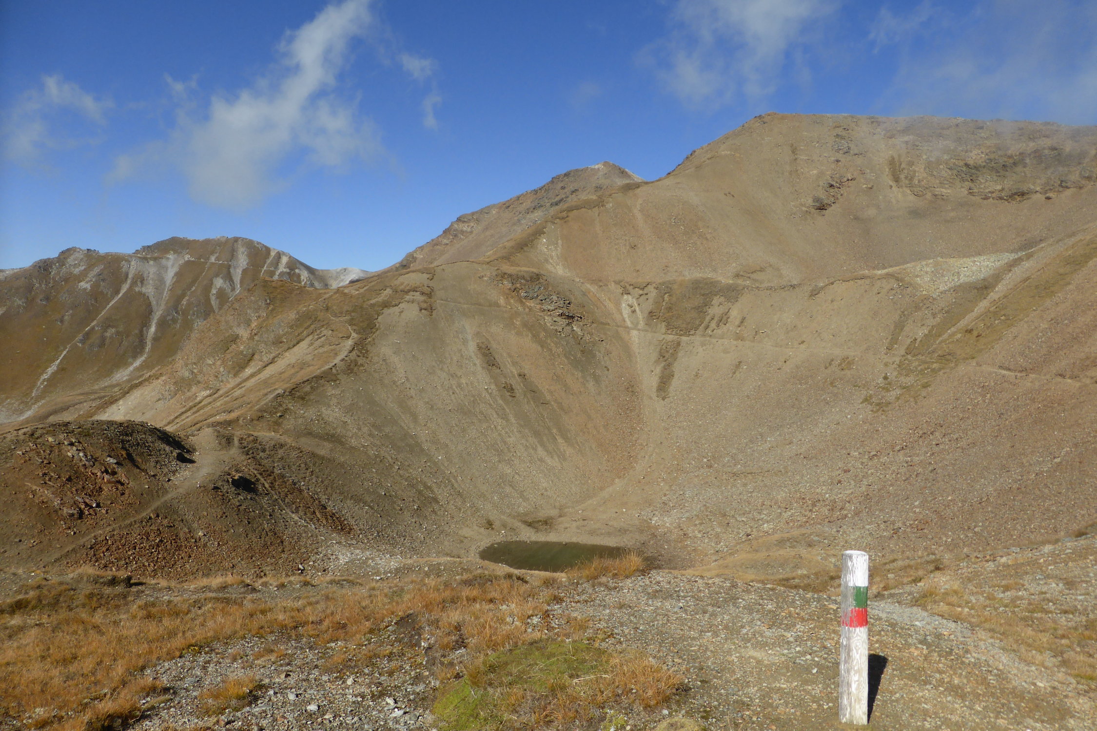 Ab Sta.Maria auf der Passstrasse bis zur Blockhütte P. 1869 Nun nach links zur Alp Prasüra, 2213 müM weiter durchs Val Costainas zum Piz Cotschen. Auf dem Goldseetrail bis vor die Stilfser Alm, links haltend zum Piz Chavalatsch.