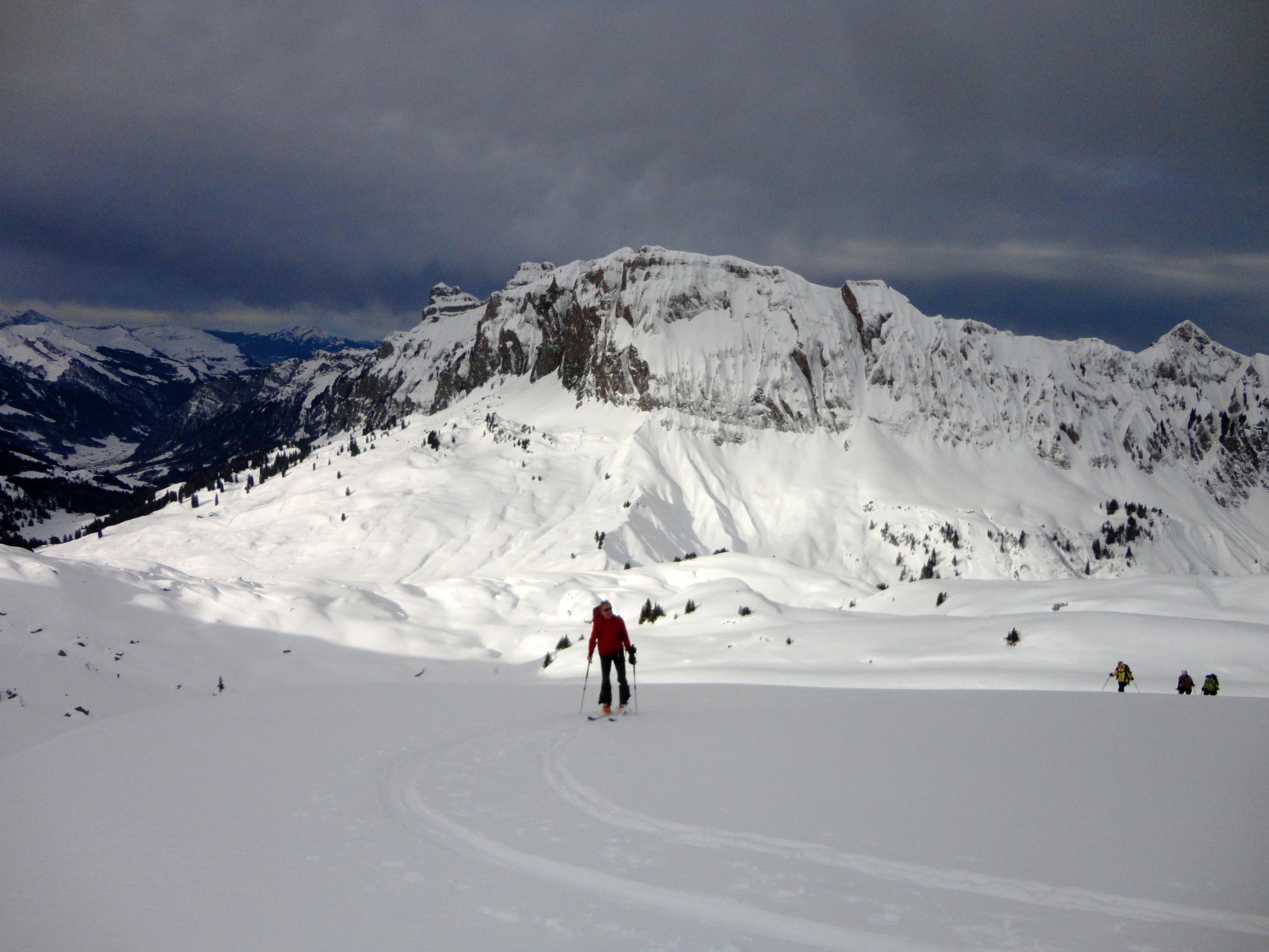 Von Hinter-Richisau (Parkplatz vor der Brücke, 1.135 m) auf der Pragelpassstrasse taleinwärts. Kurz nach der ersten Kehre kann die Strasse durch eine Waldquerung abgekürzt werden. Oberhalb auf der Passstrasse weiter, an der Alp Schwelaui vorbei bis zur Brücke, die die Chlön überquert. Nach der nächsten Kehre zweigt bei ca. 1.500 m links die Route Richtung Butzen ab. Erst durch Wald, dann in offenem Gelände zur Alp Butzen (1.780 m). Hier biegt man nach Osten ab und steigt südlich des Bietstocks in etwas unübersichtlichem Gelände zum Ochsenstrich (P. 2.207) auf. Zuletzt nach Süden über flache Hänge zum Gipfel. Abfahrt in etwa entlang der Aufstiegsroute nach Butzen, dann etwa in Falllinie hinunter Richtung Pragelpass und auf der Passtrasse wieder zurück zum Ausgangspunkt.