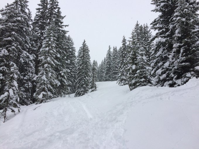 Abfahrt über Pt. 1868. Hier den Durchgang durch den Ald auf der westliche Seite benutzen und entlang dem Waldrand bis in die Senke bei Pt 1599 abfahren. Von Pt. 1583 zurück zur Forststrasse und auf dieser zurück zum Parkplatz