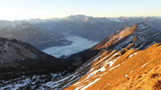 Zurück auf gleichem Weg oder ab Matt zu Unt. Fiderschen, Gmeindsberg, Kapuzberg, Rittersberg, Eichholzberg nach Weesen zurück.