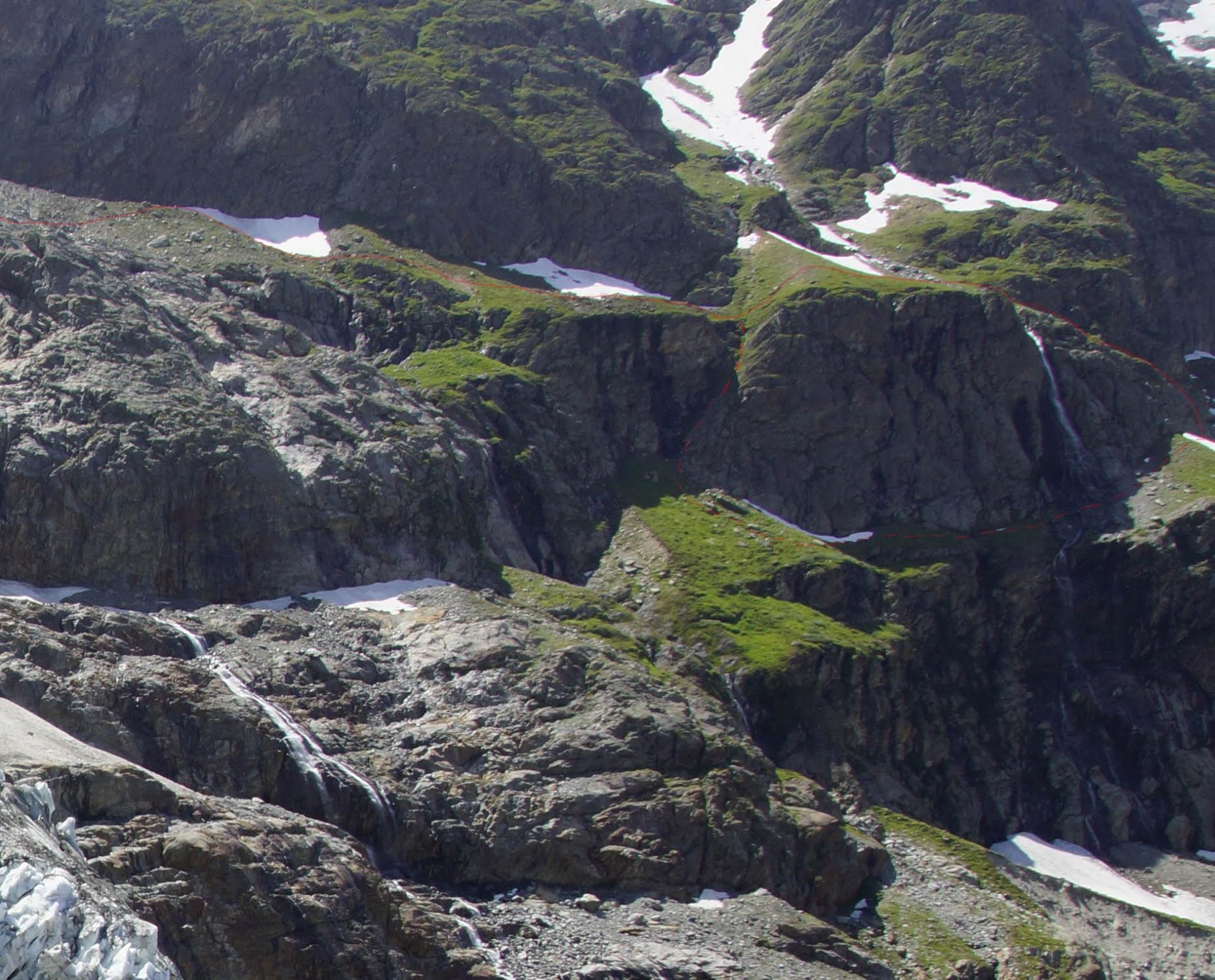 Der nächste Weg folgt etwas oberhalb des Gletschers und macht einen Bogen um die Spaltenzone auf 2520m.