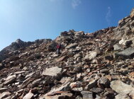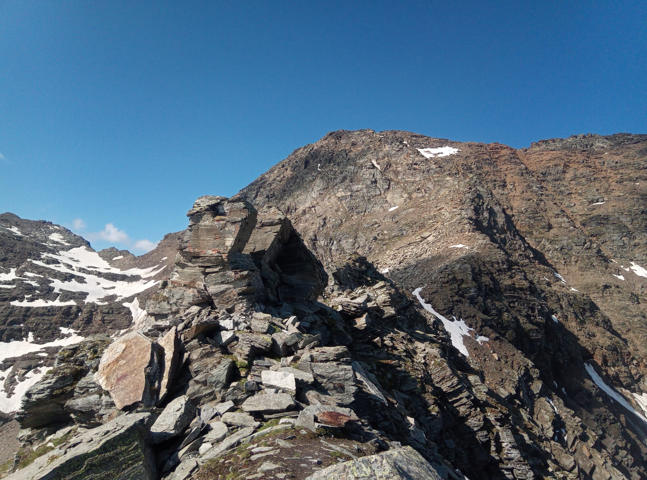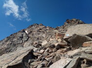 Von Maloja auf markiertem Bergweg bis Plan di Cavai. Bei der Ebene P. 2020 Weg ostwärts Richtung Plan Fond. Hier Weg verlassen und südwärts Richtung Murtairac. Auf Höhe 2400 m Weg auf Moräne. Etwa 2600 m ostwärts steil zu P. 2720, teilweise Wegspuren und Steinmännchen. Hier mehr oder wenig immer auf Grat bis ca. 3000 m. Hier weist ein alter blauer Pfeil Richtung Westen. Nachher in leichter Kletterei mehr oder wenig in Gratnähe zum Gipfel (T5). Siehe auch SAC Alpinwandern Sabine und Fredy Joss, Seite 86, Piz da la Margna, 2010.