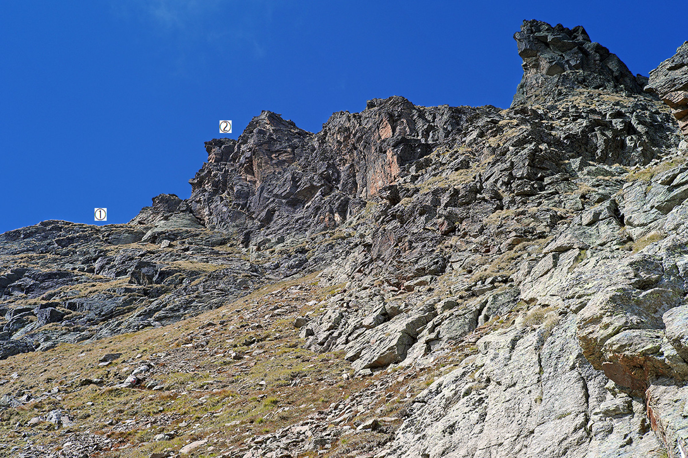 Schwierigkeit: bis T4, Schrofen, Markierungen.