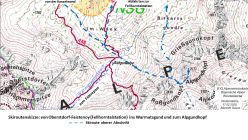 - Nach Abfahrt bis auf ca. 1700 m unterhalb der aufgelassenen Kühgundalpe Aufstieg zur Kanzelwand und Abfahrt über die Piste nach Riezlern ins Kleinwalsertal.
