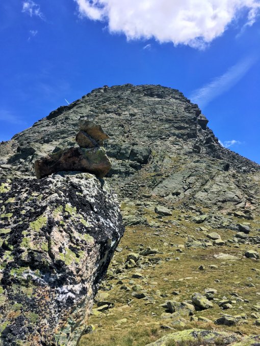 Von Pontresina Talstation Sessellift 1865 m auf markiertem Wanderweg zur Cna. Paradis 2540 m. Weiter südostwärts auf Wegspuren zu P. 2678. Nun weiter steil den zahlreichen Steinmännern nach die Nordwestflanke hinauf, einige Kletterstellen bis max. II. Weiter einige Steilstufen hinauf bis etwa 2800 m immer den Steinmännern nach. Diese zeigen die einfachste Route. Jetzt wird das Gelände flacher und man sieht von weitem den Gipfel. Guter und fester Fels, sehr wenig lockere Steine. T5-.