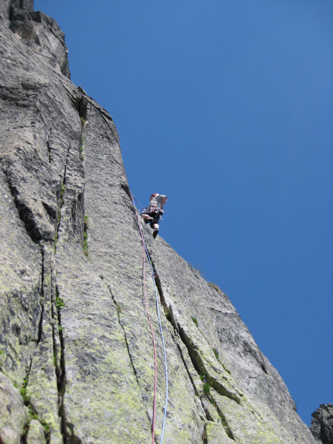 2x50m Halbseile, Keilset, 3-4 Cams mittlere Grössen, 1-2 Bandschlingen, 10 Expressen