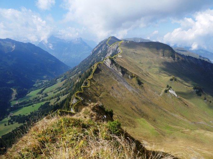 Vom Gipfel des Chlingenstock (Seesselbahn) dem Grat entlang Richtung Hängst.