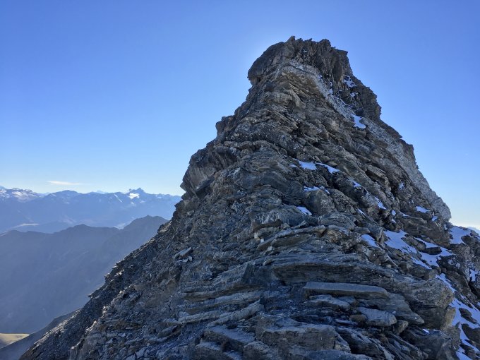 Übliche Route bei herbstlich sehr angenehmen Temperaturen. Aufgrund Schneefall Anfang Okt. nordseitig teilw. harter Schnee. Auf- und vorallem Abstieg dank Fixseil auch ohne Steigeisen möglich. Sonst sehr gute Verhältnisse ud Top-Ausssicht.