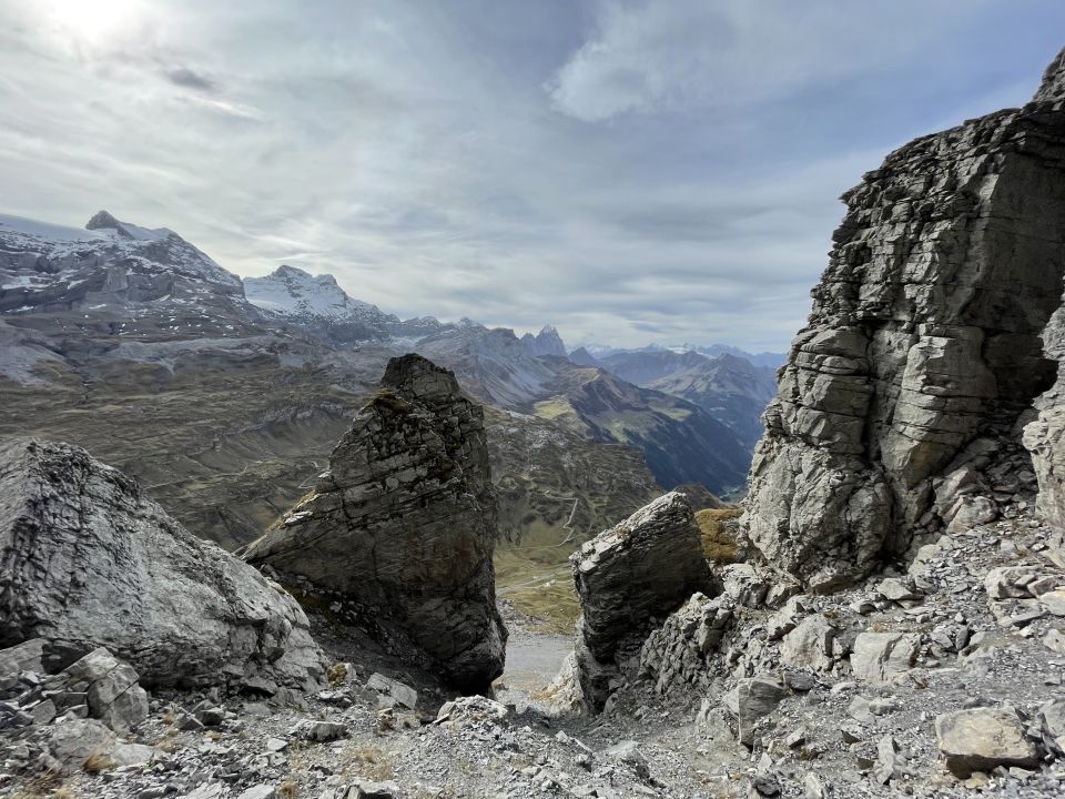 Von der Klausenpasshöhe auf deutlicher wegspur bis unters stöckli. Anstatt dem normalweg rechts übers band zu folgen gerade wegs links am stock hoch bis in eine kleine einsattelung. Nun rechts hinauf über gut gestuften fels (I) bis linker Hand und n Kamin mit Seil erscheint. Diesen hinauf, kurz links und weiter nach oben in den 2 Kamin. Hier über eisentritte hinauf, rechts über ein Felswand zum Ausstieg. Nun einfach zum höchsten Punkt.