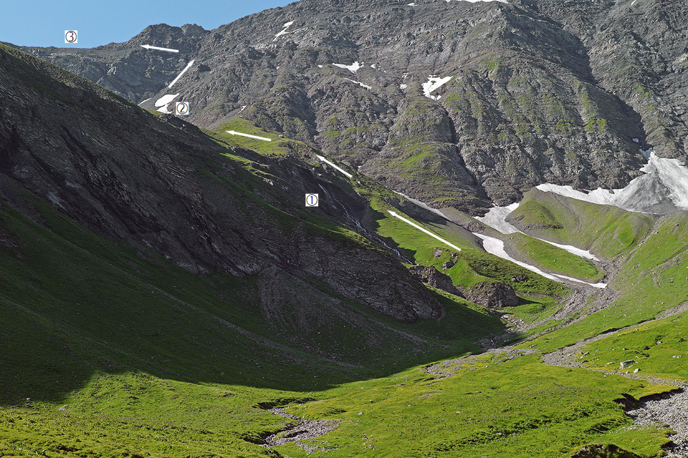 Schwierigkeit: T4, Weide, Schutt, keinerlei Begehungsspuren.