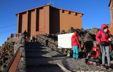 Der gut ersichtliche Pfad führt dann mäßig ansteigend weiter über Lavagestein bis zur Rambleta, einem Krater unter dem Gipfelaufbau. Durch diesen quert man rüber zur Bergstation der Seilbahn (3555m). Von dort steigt man über treppenartige Felsstufen hoch zum Gipfel.