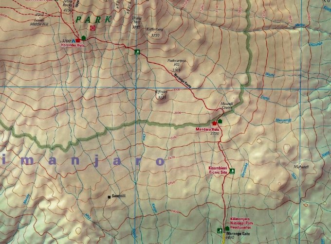 Die Marangu Roure ist der Normalweg auf den Kilimanjaro / Kibo. Man daf ihn aber nur mit einem lokalen Führer und Träger begehan. Entweder man organisiert es bei einem Anbieter zu Hause oder billiger über eine afrikanische Agentur da die Kosten für den europäischen Anbieter wegfallen.