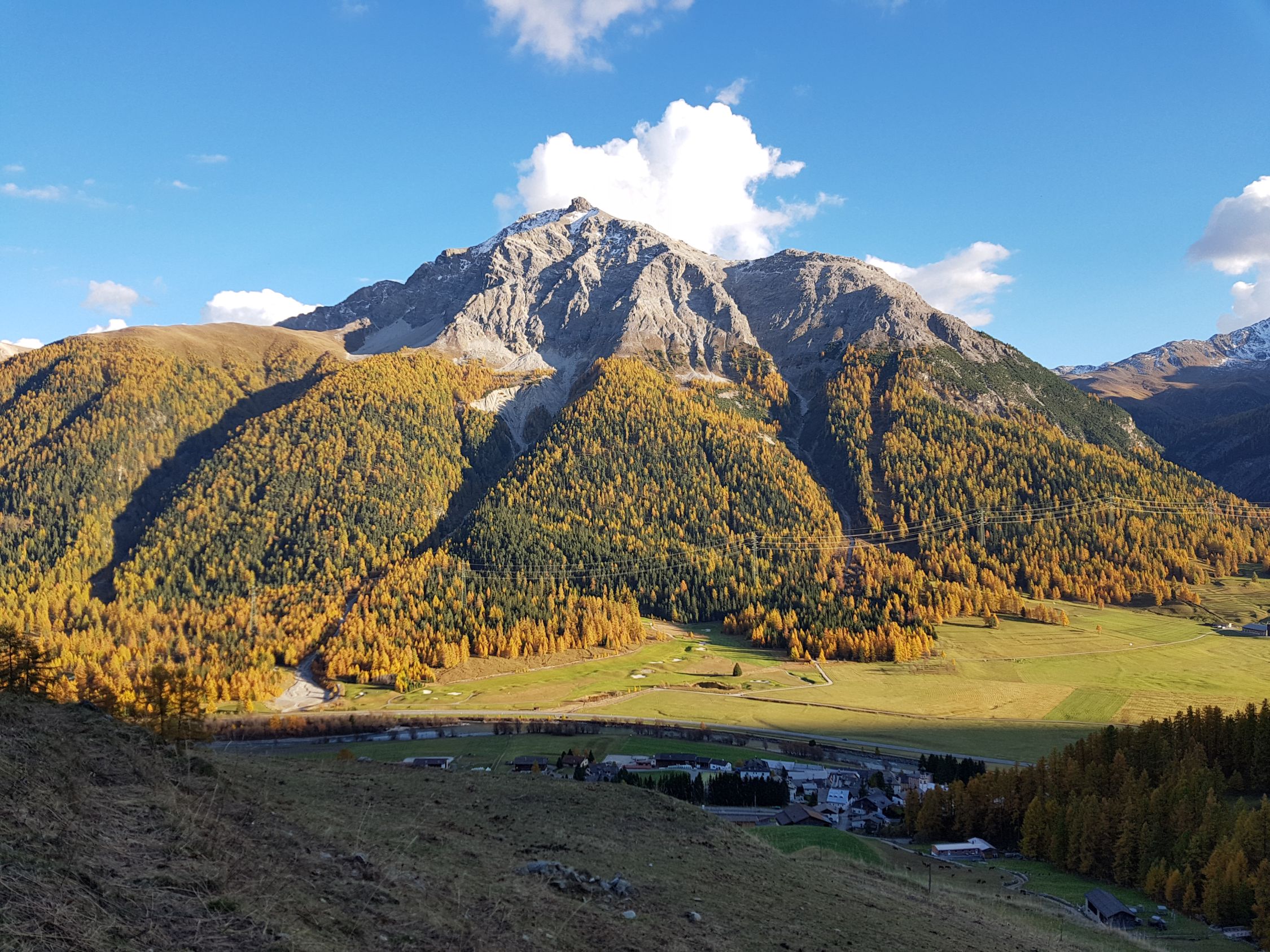 Von La Punt Chamues-ch 1700 m auf Forststrasse der Ova Chamuera entlang bis P. 1756. Nun scharf links abbiegen Richtung Madulain. Etwa auf Höhe 1825 nach Sitzbänke steil den God Pischauns hinauf Richtung Osten der Gemeindegrenze entlang. Auf Höhe 2225 steil durch Legföhren auf Weg Richtung Südosten. Nun steil auf Geröll den Steinmännern nach bis P. 2679. Immer mehr oder weniger der Gemeindegrenze nach. Nun auf dem Südwestgrat den Steinmännern nach und am Schluss steil zum Gipfel. T4. Abstieg über Südflanke zuerst etwa 100 m weiter auf Grat und dann südwärts bis Höhe 2700 m. Nun auf dieser Höhe, teilweise Wegspuren, bis oberhalb Munt da la Bes-cha. Jetzt steil hinunter zu Forststrasse Höhe 1950 m. Auf dieser nach La Punt.