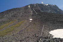 Ab etwa 3000 m Höhe geht das Geröll in Schrofen mit leichten Kletterstellen im Schwierigkeitsgrad I über. Die letzten 100 m empor zum Gipfel sind in kurzen Stellen leicht ausgesetzt und abschüssig.
