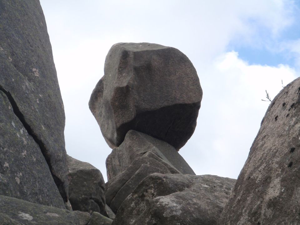 Von der Kirche läuft man die Teerstraße kurz dorfeinwärts (weißes Schild:“Sentier l’omu di cagna“) bis zur Snack-Bar „U Terranu“. Dort biegt die Straße nach rechts ab. An linker Seite passiert man einen kleinen Gartenhang. Auf dieser läuft man entlang bis zu einem scharfen Linksabzweig bei 2 Agaven an der Toreinfahrt zu dem Gartengrundstück (5 min.). Rechts vom Tor beginnt der Wanderweg (weißer Wegweiser und gelber Wegweiser „Omu di Cagna“). Rechts von einer Steinmauer folgt man den dünnen PVC-Wasserleitungen hinauf zu einem Wasserspeicher-Haus mit grüner Tür (15 min.). Der mit gelben Strichen signalisierte Bergweg dreht etwas nach Südosten und quert dabei einen Hang. Anschließend kreuzt man ein trockenes Bachbett. Schließlich erreicht man ein Plateau (810 m), von wo man erstmals das Ziel sieht, den auffälligen Steinkopf des Berges. Durch den Wald führt der Weg nun nordostwärts weiter. Dabei passiert man eine uralte Steineiche, die mitten auf dem Weg steht (45 min.). Nach 50 min. gelangt man zu einem flachen Pass, wo einige kleine Steinpyramiden stehen. Der Weg führt in rechtem Bogen zu einem gelben Wegweiser (15 min.). Ab dort markieren Steinmandl die Route durch beginnendes Felsgebiet. Vereinzelt findet man auch gelbe Striche vor, welche westseitig um die Cima di Cagna (7 m höherer Gipfel als der Omu) und um einen vorgelagerten Felsen lenken. Sie enden nach einem Felsentor. Ab hier beginnt Kletterei (K 1+) mit wenig Griffmöglichkeiten (viele auf Reibung treten) über die großen runden Granitblöcke hinauf zur Felsscharte nördlich neben dem Wackelstein. Steinmandl gibt es oben nicht mehr. Man muss also selber suchen und probieren (30 min.).