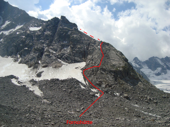 Der Gletscher welcher hier in älterer Führerliteratur beschrieben ist, existiert nicht mehr.