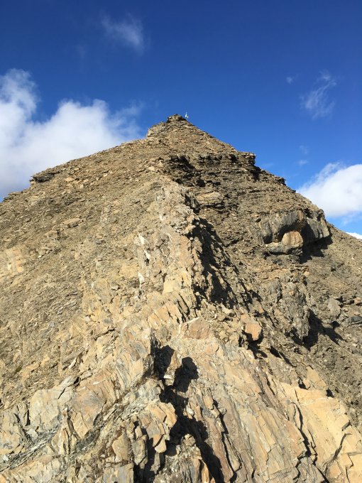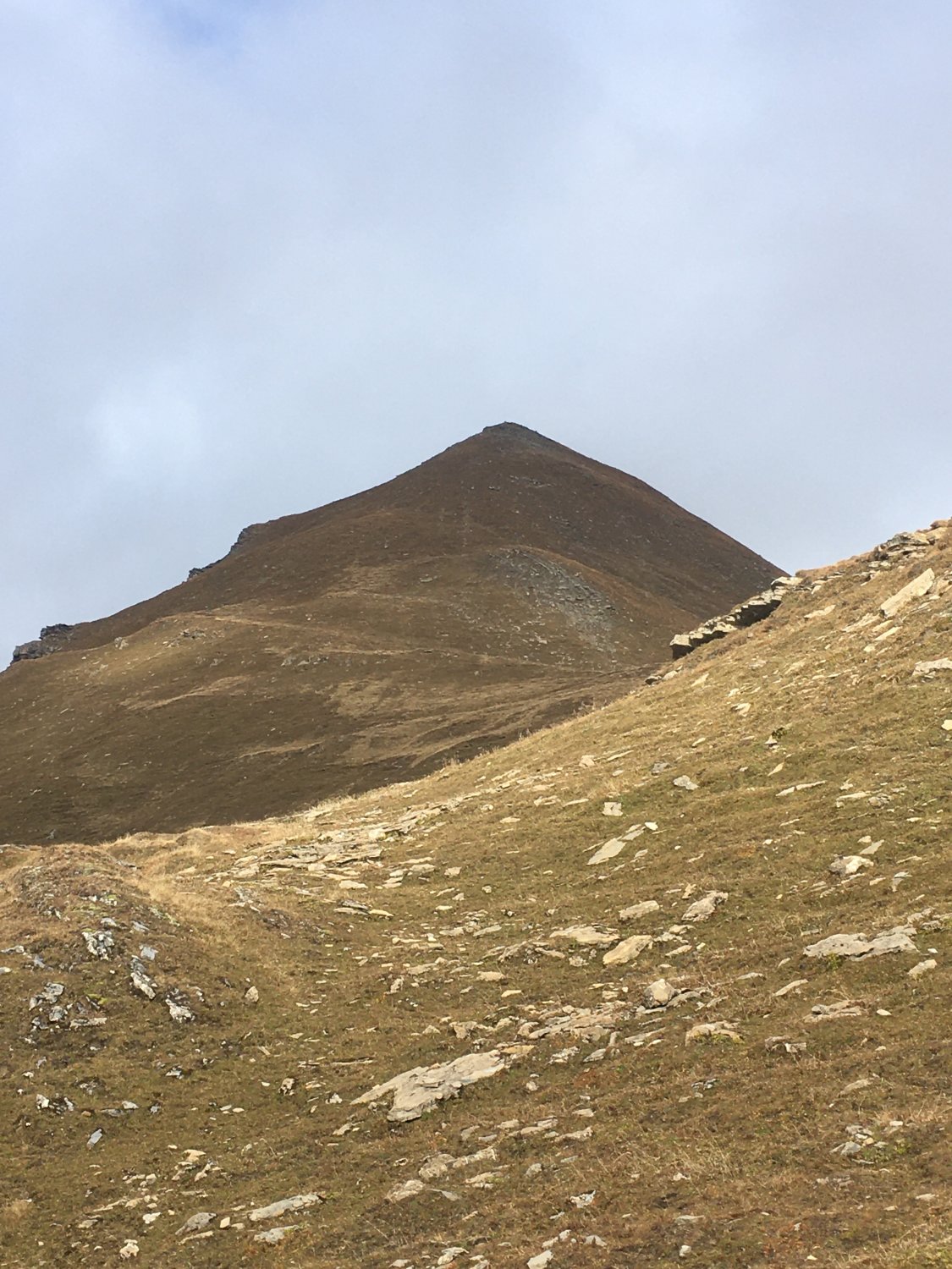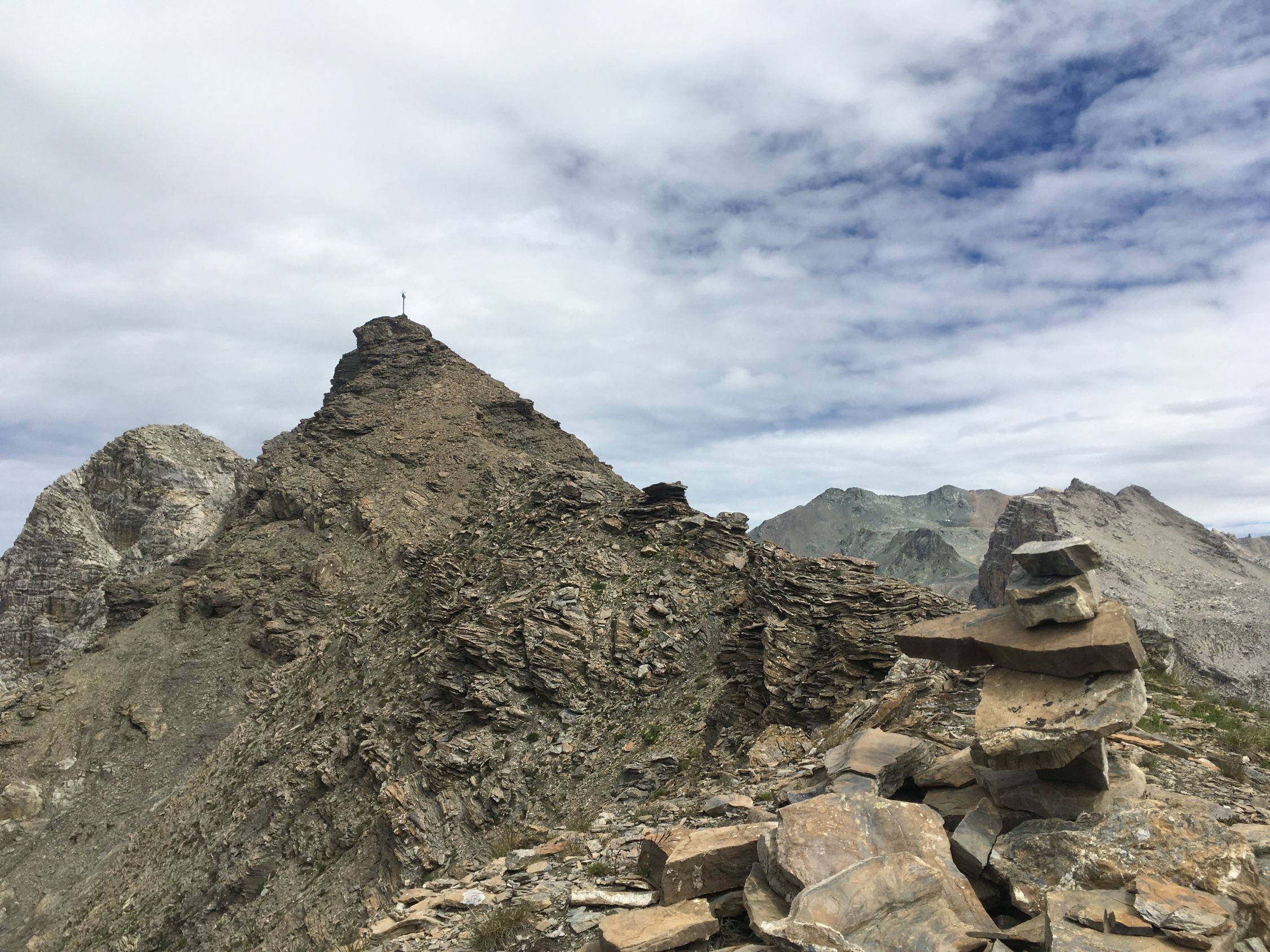 Von Parkplatz Val d Agnel 2205 m Richtung Westen in die Ostflanke. Etwa auf Höhe 2400 m auf Wegspuren südwärts und in einem Bogen zu P. 2541. Markante Stange beachten. Nun auf Grashängen nordwärts zu P. 2746. Jetzt auf Grat teilweise leicht ausgesetzt bis zum markanten Gipfel mit Wetterstation. T4+.