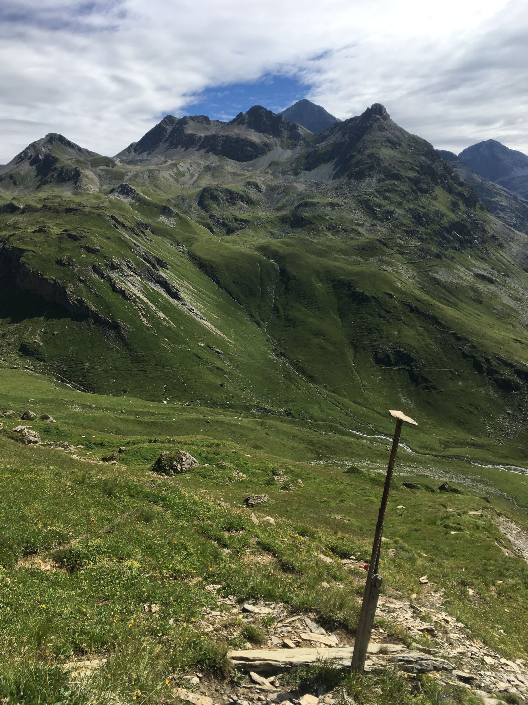 Abstieg wie Aufstieg oder via Vairana und Surgonda auf nicht markiertem Wanderweg T4.