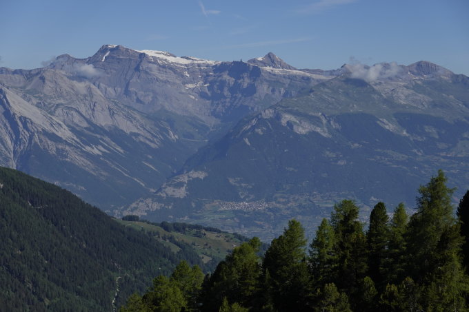 Von Siviez (Super-Nendaz) nimmt man die Sesselbahn nach La Tsa / Combatseline. Man erspart sich so einige Höhenmeter, doch die Sache hat einen Haken: Der Sessellift beginnt seinen Betrieb erst um 9 Uhr (man erreicht aber Siviez mit dem öV ohnehin auch nicht früher). Man folgt nun dem aussichtsreichen Höhenweg entlang der Ancienne Bisse de Chervé bis zur Lokalität Les Tsamos (ich brauchte dafür viel länger als aufgrund der Karte erwartet), wo man den markierten Weg Richtung Grand Désert rechts liegen lässt und auf nicht besonders ausgeprägtem Zickzackweg ins Gebiet südlich der Alp Les Vatsenaires aufsteigt. Von dort steigt man in südöstlicher Richtung steil durch eine Mulde hinauf, wobei man sich möglichst an die begrasten bzw. schuttärmeren Bereiche hält. Bei geschickter Routenführung kommt man deutlich weniger mühsam, als es zunächst scheint, zum Pass auf knapp 2900 m westlich des kleinen Sees bei Pt. 2877. Es scheint ab dem See auch eine mit Steinmännern markierte Route durch die Westflanke zu geben, die nicht mal einen allzu steinschlägigen Eindruck macht. Ich bin dem Grat nach Süden (an Pt. 2942 vorbei) und dann nach Südosten gefolgt, um zwischen Pt. 3053 und Pt. 3148 den Südgrat des Métailler zu erreichen. Das recht feste Gestein ermöglicht ein relativ bequemes Kraxeln.