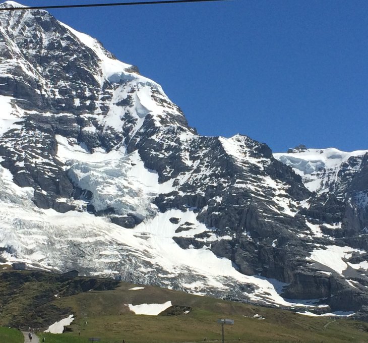 von der station eigergletscher entweder auf dem wanderweg bis pt.2098 oder gleich an der moränenflanke bis auf ca. 2200m absteigen, wo man auf bändern zum blau-weiss markierten weg zur guggihütte queren kann. von hier alles entlang des üppig markierten weges zur guggihütte. 1,5h