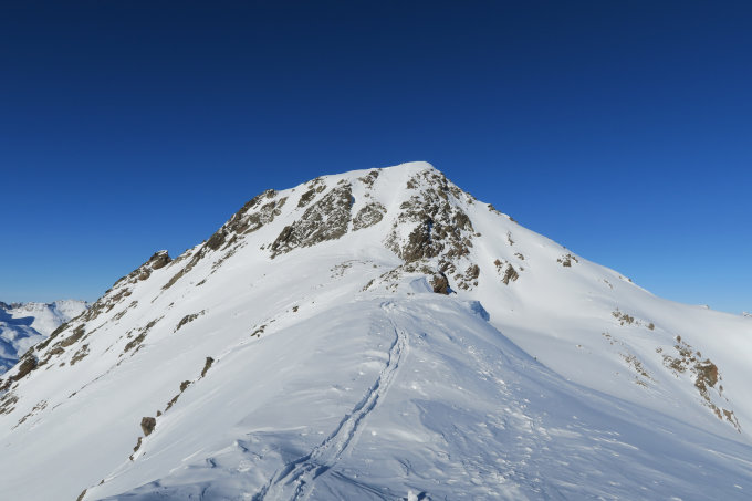 Durchs Val Susauna bis zur Alp Pignaint dann durchs Val Viluoch über den Punkt 2936 auf den Gipfel. Der Gipfelhang ist steil aber kurz.
