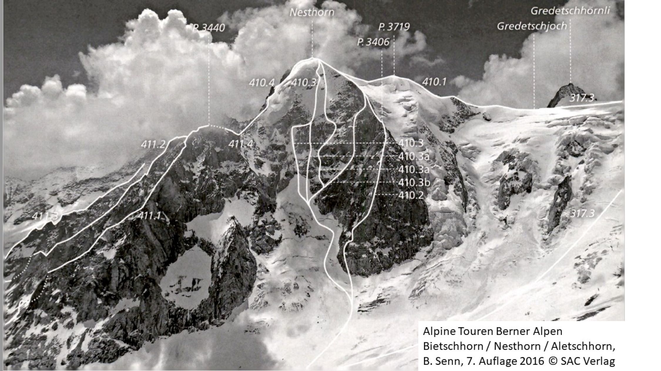 • Senn, B, Bietschorn / Nesthorn / Aletschorn, 7. Aufl., SAC-Verlag, 2016