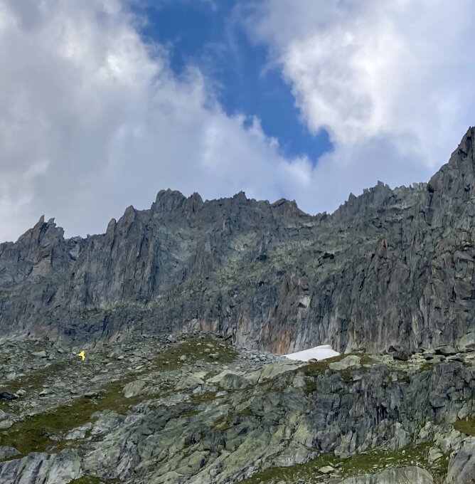 Von der Albert Heim Hütte oder Parkplatz Tätsch auf dem Bergweg Richtung Lochberglücke bis auf ca 2620m. Dort links zum Wandfuss nach dem grossen Schneefeld. Gleicher Zustieg wie für die Route „via Amici“.
