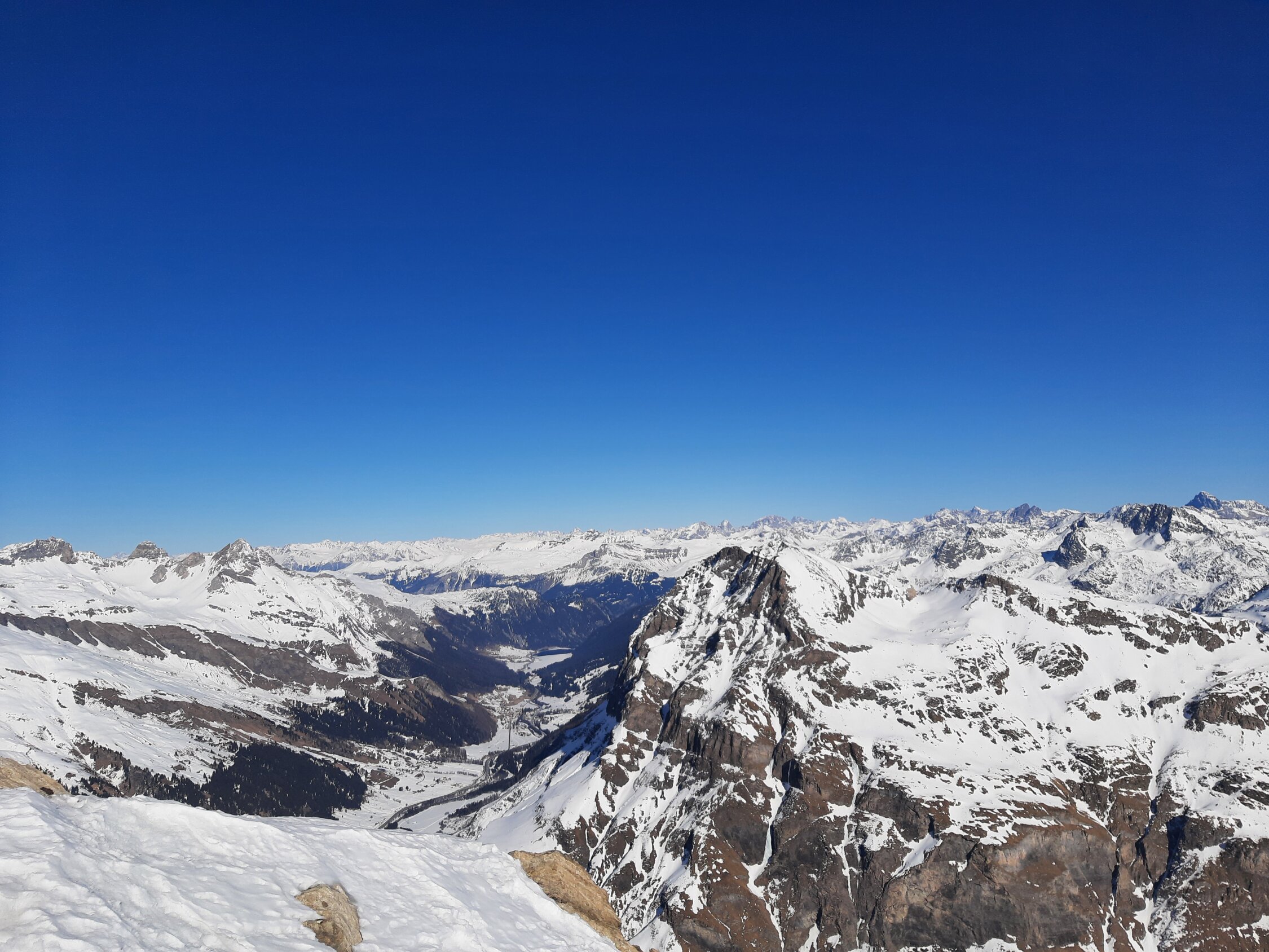 Weiter das Tal hinein zur Alp de Rog und danach hinauf, der Rotfluh entlang zur Normalroute. Ab ca. 2400m nach rechts (N) queren und unterhalb von I Porton in die Mulde unter der Gipfelflanke queren. Ab hier durch die Flanke hinauf Richtung Ostgrat und je nach Schneeverhältnissen mit den Skiern bis unter den Gipfelvorbau. Skidepot und in einfachem aber steilen Gelände zum Gipfel.