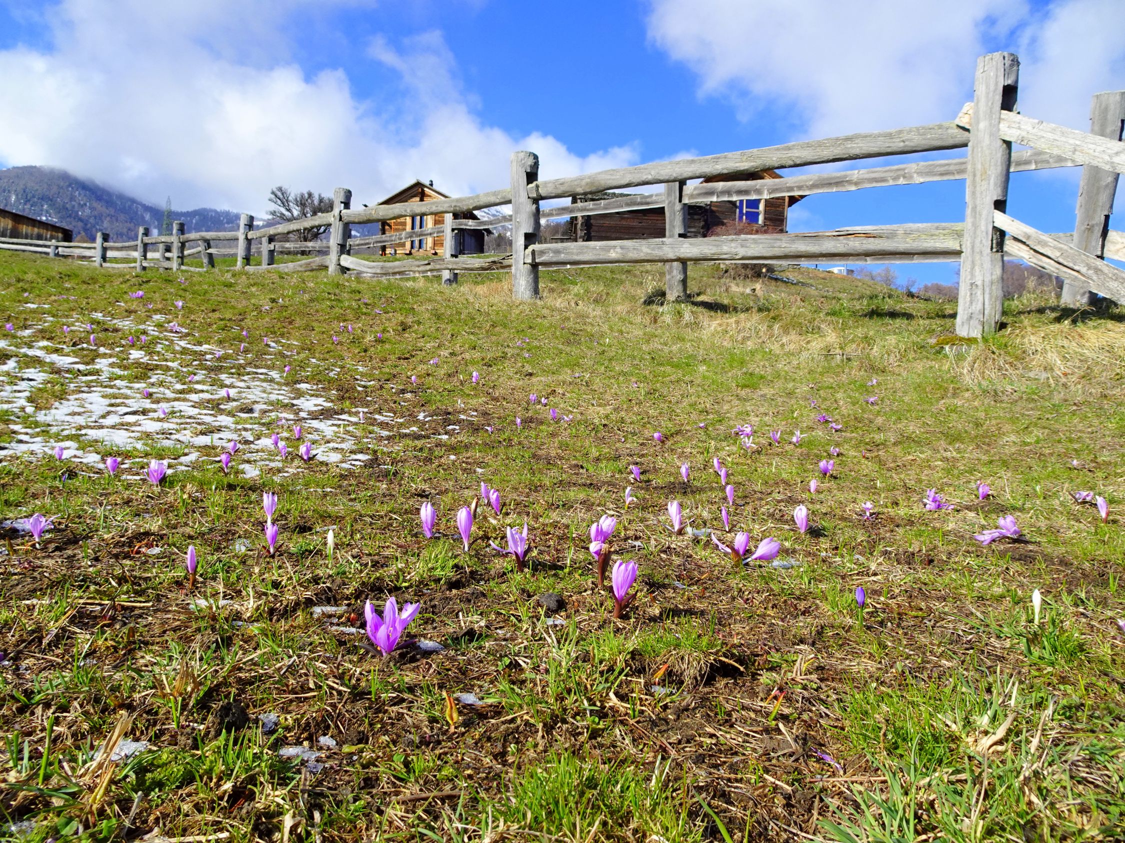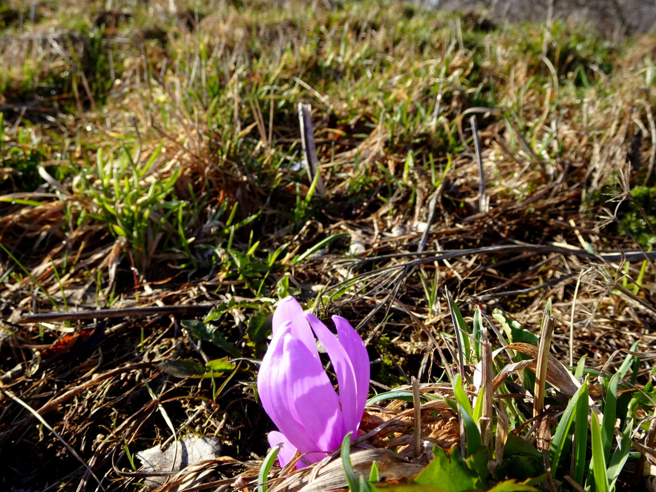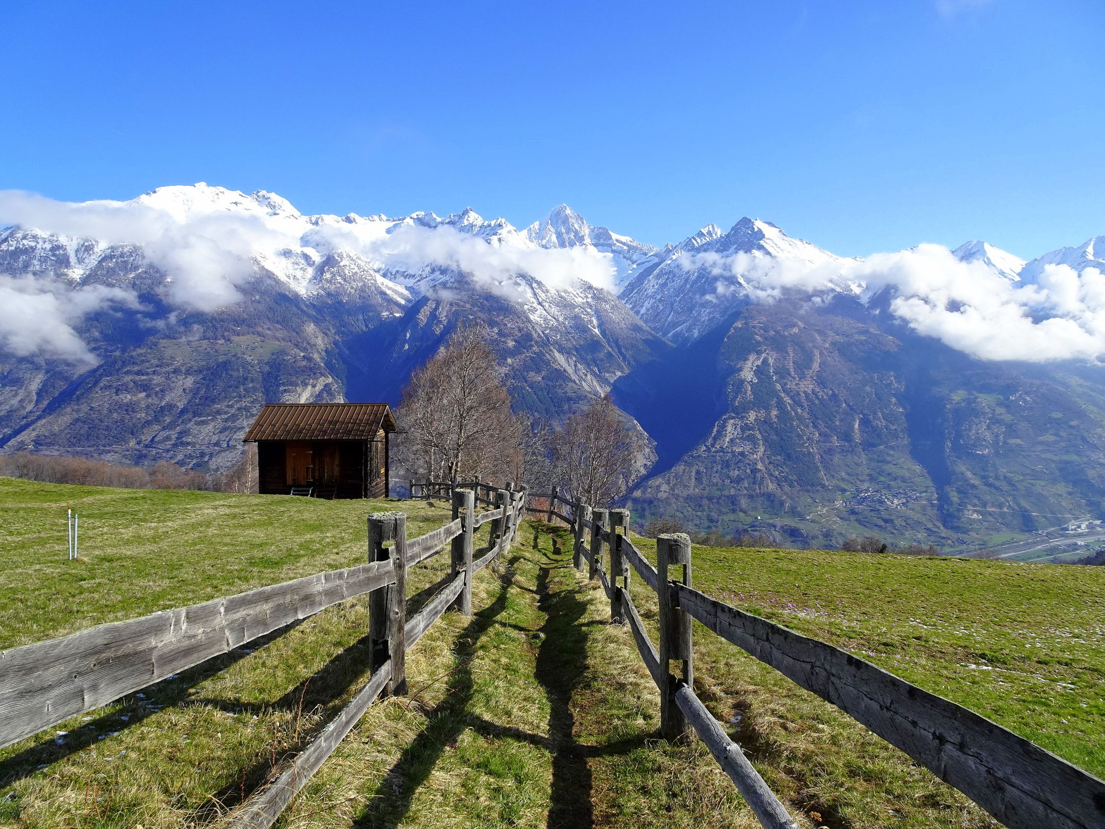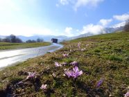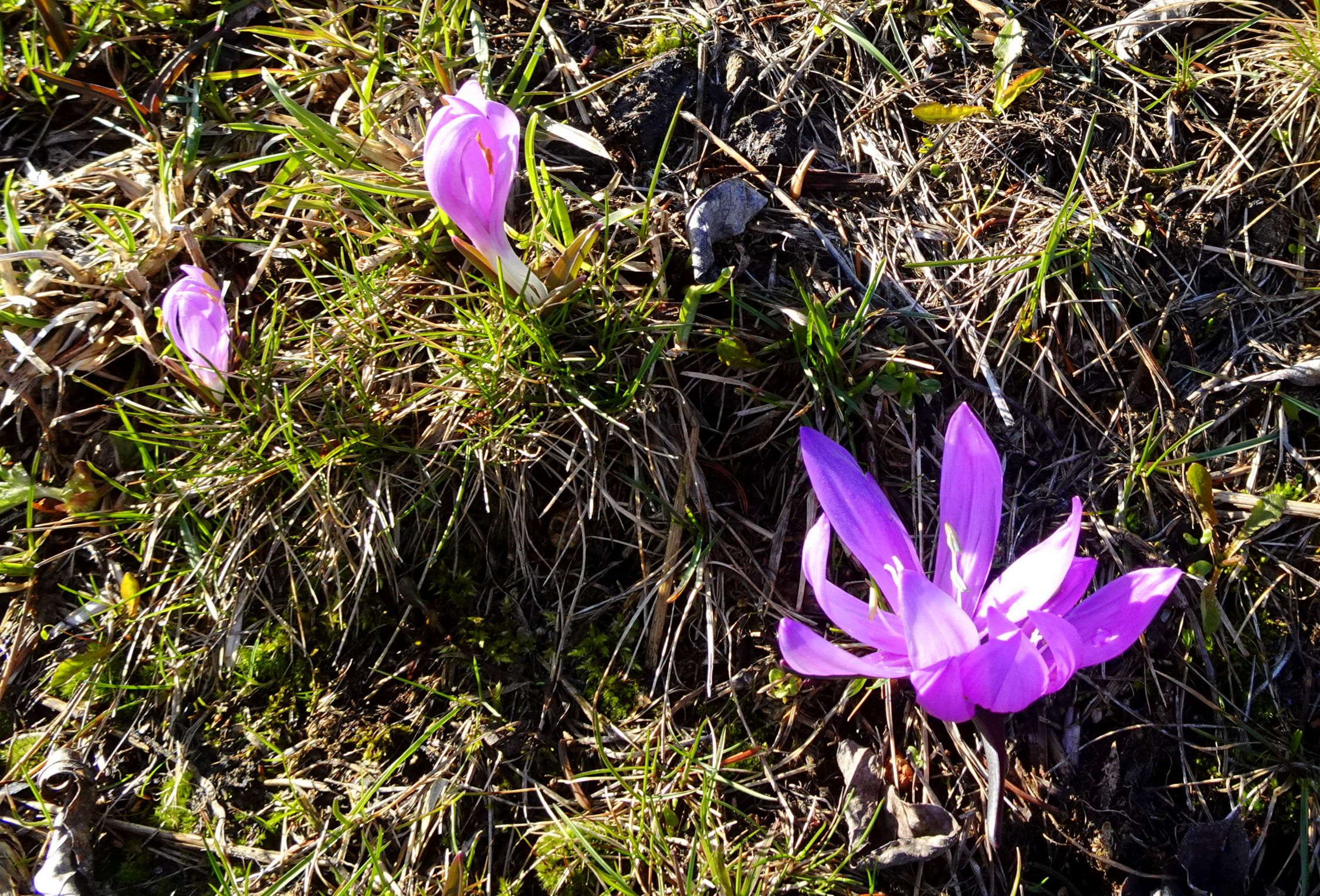 Einfacher: Hinter der Bahnstation geht man hinauf bis zur Kreuzung, hier folgt man der nach rechts aufsteigender Fahrstrasse bis zu einer Abzweigung nach links (Wanderwegweiser "Lichtblumenweg" an der Mauer. Nun steil links hinauf am Rest. Alea vorbei und weiter steil bis zur Fahrstrasse die von rechts kommt. Hier beginnt die Zone mit den Lichtblumen. Nun folgt man dem Lichtblumenwegweiser und schwärmt links und rechts der Strasse wo man die Blumenfelder sieht. Weiter dem Weg hinauf bis Oberhiischru und ca 100 m. oberhalb trifft man auf Wegweiser und auf die Alte Erschlersuon. Der folgt man nach rechts bis Habere und dann wieder rechts hinunter nach Eischoll. Dies ist die Hauptroute, man kann verschiedene Varianten begehen, je nach Schnee- und Blumenstand.