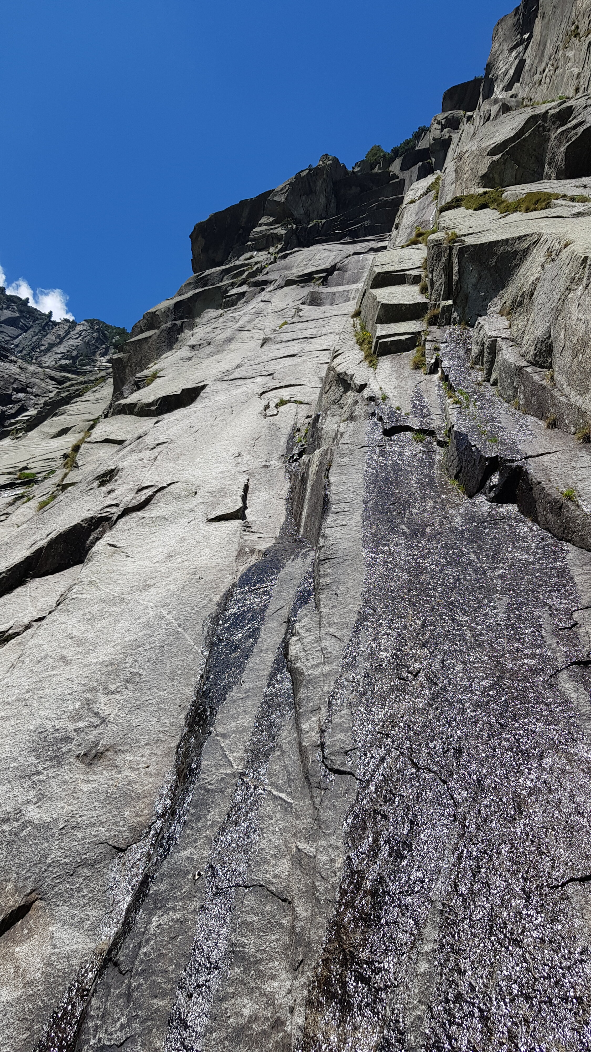 Von der Kehre der Strasse (Parkplatz von unten kommen links) über eine kleine Brücke und kurz steil ansteigend zum Einstieg. Ca. 10 Minuten.