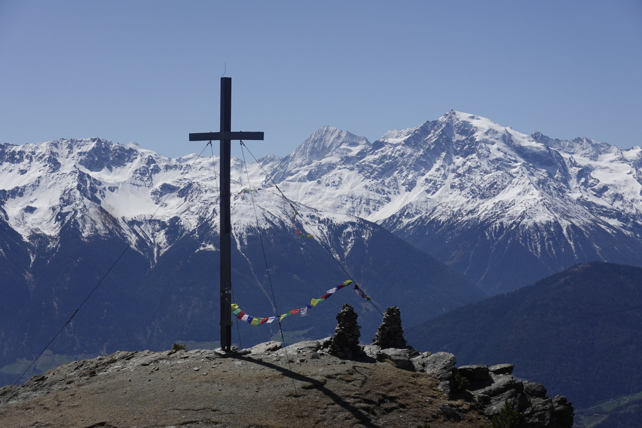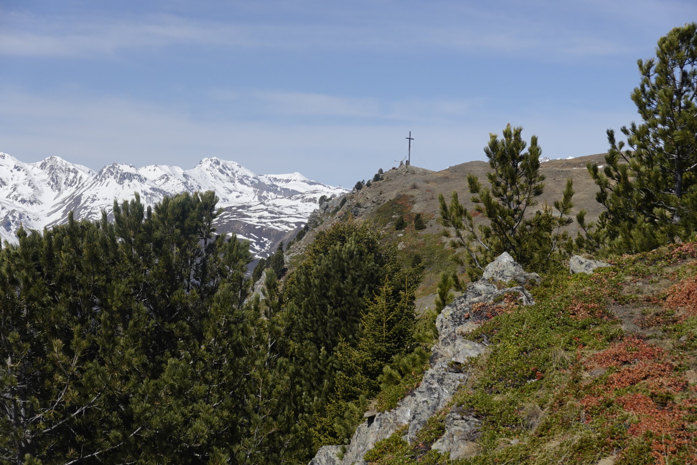 Man fährt mit dem Bus (stündliche Verbindung ab Mals) nicht bis zur Endstation, sondern steigt im Dorfzentrum beim Gasthof "Weisskugel" aus. Von dort biegt man in ein geteertes Alpsträsschen ein, das nach Südwesten aufwärts führt (im Dorfzentrum nicht ganz einfach zu finden, hier etwas schlechte Beschilderung). Ist man einmal auf der Route (sie trägt die Nr. 13), ist sie deutlich markiert und nicht mehr zu verfehlen. Zuerst geht es dem Strässchen nach - bald hört der Teerbelag auf - etwas langatmig durch einige Kehren aufwärts. Dafür kann man schöne Ausblicke in die Kulturlandschaft des vorderen Matscher Tals und hinüber zur Ortler-Gruppe geniessen. Auf einer Höhe von ca. 1860 m beginnt der eigentliche Wanderweg, der zunächst kurz durch Wald, dann durch schöne Weiden mit einzelnen Bäumen nach Plantavillas führt. Dort geht es nochmals einigermassen steil aufwärts, bis eine lange, nur noch schwach ansteigende Hangtraverse in nordwestlicher Richtung einsetzt. Kurz vor dem riesigen Gipfelkreuz erreicht man den sanften Verbindungsgrat zum Niederjoch und dann in wenigen Minuten den Gipfel.