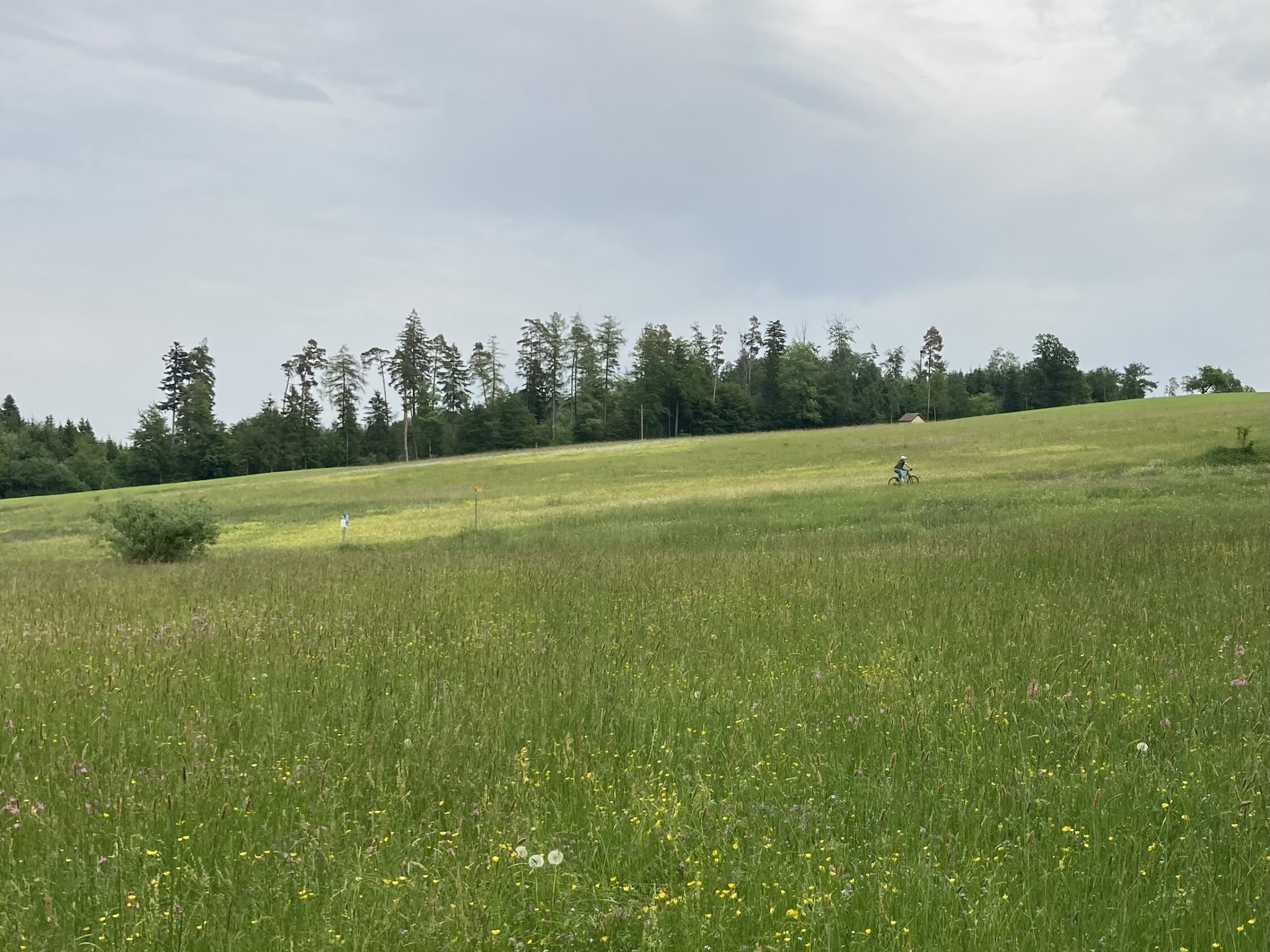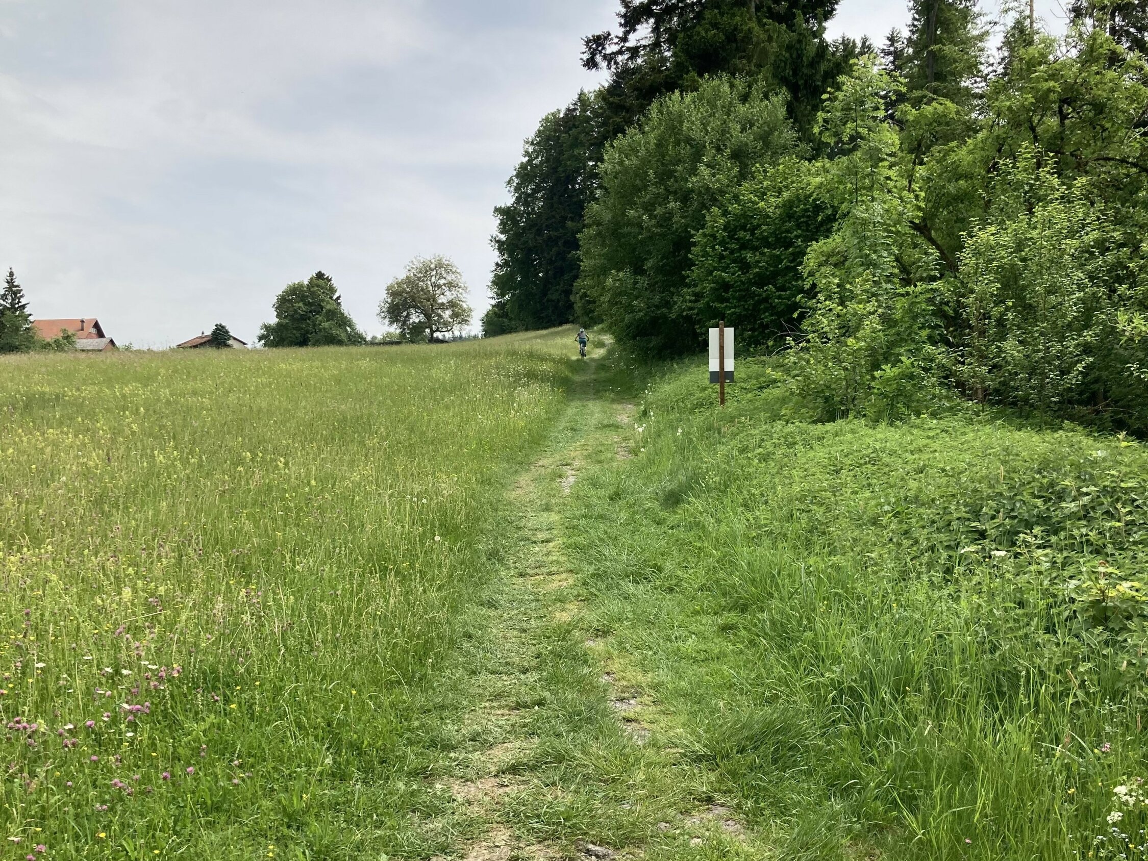 Entlang dem Wanderweg hinunter zum Vorderen Pfannenstiel. Dem Trail neben der Strasse folgen bis Chnolli und weiter bis an die Hauptstrasse bei Chrüzlen.