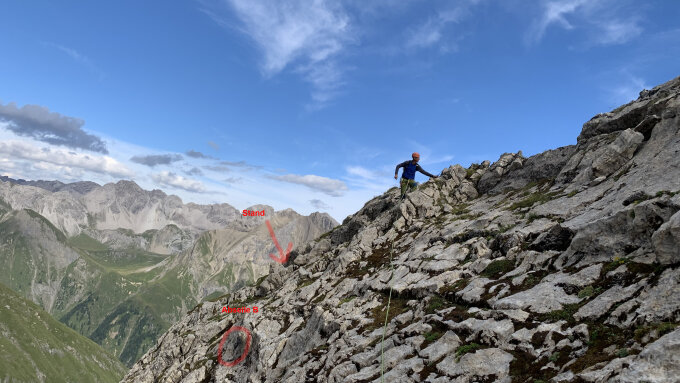 Der Gipfelsteinmann ist nicht auf dem Gipfel, sondern weiter L am Grat (Diebstahl und Heelerei)