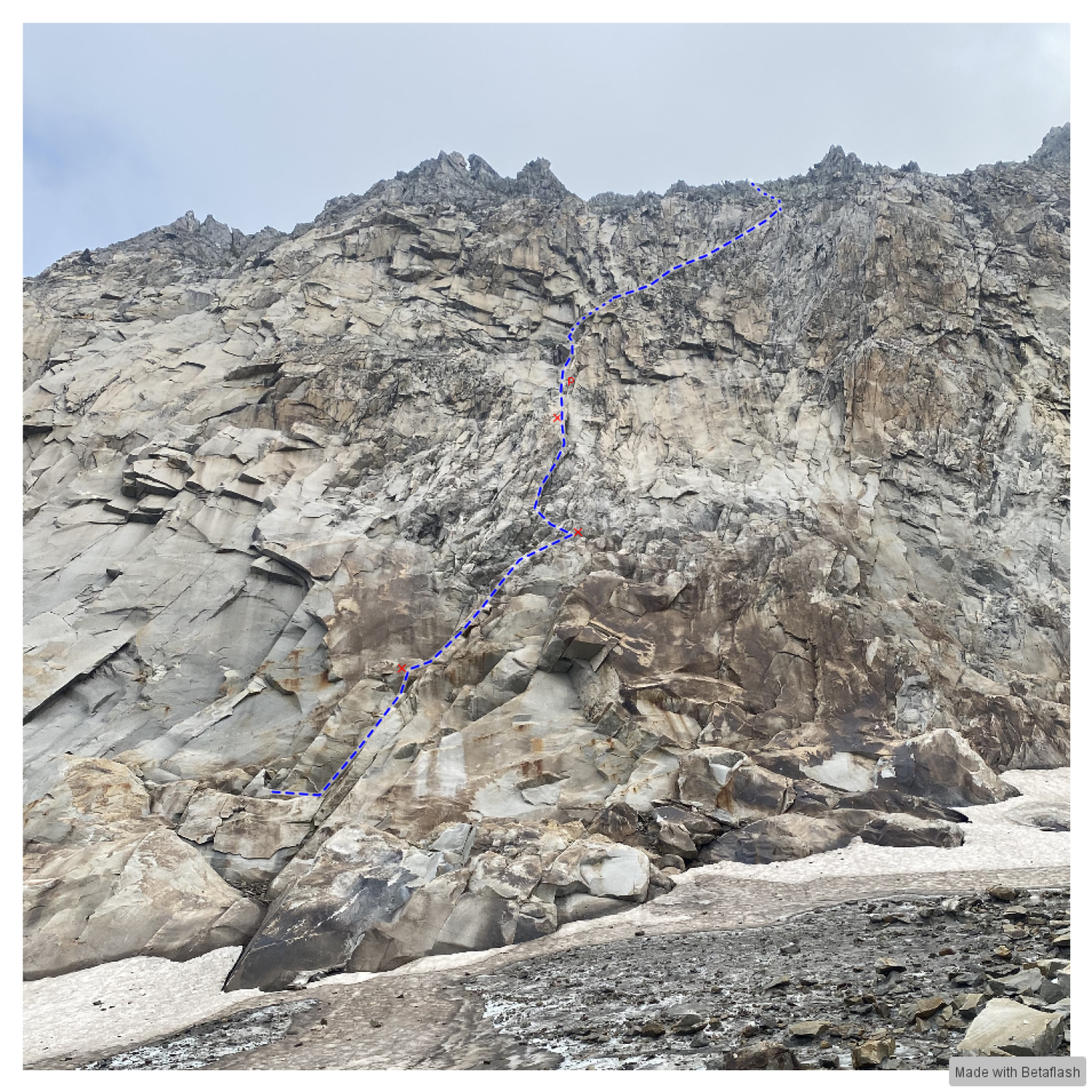 Schöne Kletterei von 150 m Höhendifferenz in gutem Fels. Friends und Klemmkeile sehr empfehlenswert, da die Route nur spärlich eingerichtet ist.21.07.2022