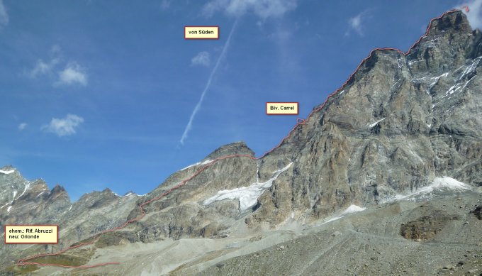 Von Cervina zum Rif. Duca degli Abruzzi (2.802m, im Tal auf Hotel Oriondé genannt).
