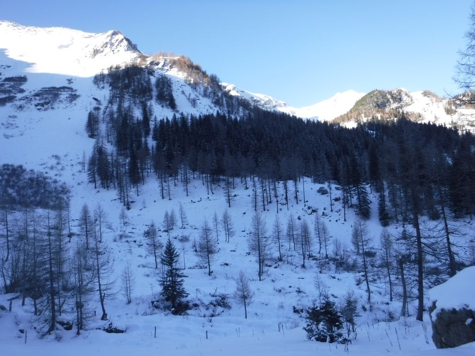 Abstieg: Auf selben Weg zurück zum Rappasteinsattel (20 min.). Nun nordwärts über den Grat zum spitzen Vorgipfel des Goldlochspitzes und den Grat weiter zum Gipfelplateau vom Goldspitz (30 min.). Von hier folgt man mehr oder weniger dem Sommerweg kurz ostwärts folgend den ca. 33° steilen Nordhang bis man nach links in die Hochebene vor dem Kolme abdreht. Nordwärts rechts von den Steilabbrüchen fernhaltend nun bis kurz vor dem Kolme (45 min.). Im Weidezaun linkerhand gibt es ein Drehkreuz. Hinter diesem führt der Sommerweg kurz steil (ca. 33° Neigung) hinab in die Westflanke. Durch lichten Lärchenwald nun zum Sattel Wanghöhe (1884 m) in 18 min. Geradeaus führt der Bergweg nach Sücka über die bewaldeten Bergkuppen Heubüal und Chrüppel. Dieser liegt jedoch in der Winterruhezone zwischen 15. Dezember und 15. April. Man biegt hier beim Wegweiser scharf rechts ab (Richtung: Alpelti, Steg). Man folgt der schmal geschnittenen Wegschneise durch das Erlengestrüpp im Zickzack hinab nun nordöstliche Richtung zu den 3 Hütten von Aelple (1623 m) und biegt dort rechts ab auf den Alpweg zum Wegweiser Alpelti (40 min.). Dort biegt man scharf links ab und folgt dem Güterweg in nördliche Richtung über P 1573 zur Wegegabelung (P 1517) im Schwemmmiwald. Nach links beginnt ein Forstweg, den man ignoriert. Geradeaus weiter entweder bis P 1401, wo von rechts der Winterwanderweg vom P 1319 (südlich vom Gänglesee) ankommt, oder schon vorher rechts über einen unmarkierten Waldpfad hinab zum Winterwanderweg (Abkürzung). Auf diesem in südöstliche Richtung zum P 1319. Oberhalb vom Gasthaus „Seeblick“ kann man über einen Grashang jedoch direkt absteigen und kürzt den südlichen Schlenker ab, hat man in Steg parkiert. Auf dem Teersträßchen (Valünastraße) nun zurück zum Parkplatz (P 1276) in 80 min. ab Aelple.