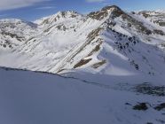 Am oberen Ende vom Parkplatz gabeln sich die Fahrwege, welche für den öffentlichen Fahrverkehr gesperrt sind. Dort steht ein Wegweiser. Der Fahrweg geradeaus führt zur Filialkirche von St. Helena und zum Übernachtungshaus Helener Bichl. Der halblinke Forstweg führt unsteil hinauf zur Mariolberger Alm. Wer den Abstecher zur Wallfahrtskirche auf dem Helener Bichl macht, läuft den Fahrweg nordwestwärts etwas bergab zum Hof Halsmann (1488 m) im früheren Mariolwerch (12 min.). Dort beginnt kurzer Kreuzweg (Wanderweg Nr. 5) hinauf zur 1338 erstmals urkundlich erwähnten Kirche (1532 m) und zum Gasthof „Helener Bichl“ am Ultener Sonnenhang (10 min.). Zurück zum Hof Halsmann, wo beim Wegweiser nach rechts rot-weiß signalisierter Bergweg Nr. 8 abzweigt. Diesem folgt man westwärts durch den Fichtenwald bis man bei einem Wegweiser auf den Forstweg stößt (17 min.), welcher bei einem Mariolberger Alm führt. Links am Trinkwasser-Behälter vorbei folgt man dem Fahrweg (Wanderweg Nr. 9A) in westliche Richtung kaum an Höhe gewinnend in 35 min. zur Falkomai-Kuhalm (Mariolberger Alm, 1661 m). Links an ihr vorbei verbleibt man auf dem Fahrweg, auch wo kurz danach der Wanderweg Nr. 3 scharf rechts nach St. Pankratz abzweigt. Rechts vorbei an erster Brücke über den Kirchbach (5 min.) endet der Fahrweg bei der Talstation der Materialseilbahn zur Falkomai-Alm. Rechts unterhalb dieser überquert man nach rechts über zweite Brücke den Kirchbach zu einem Wegweiser hin (10 min.). Nach Norden beginnt der Sommer-Wanderweg Nr. 3 zur Falkomai-Alm. Man hält sich jedoch links und es beginnt rot-weiß signalisierter Wanderweg Nr. 3A (alte Markierungen: grün-weiß). Stets an rechter Ufernähe läuft man unsteil westwärts ins Kirchbachtal, vorbei an kleiner Bachfurt (P 1797), wo nach links ein unmarkierter Steig beginnt. Weiter durch den Fichtenwald bis zu einer großen Hanglichtung, wo man oben inzwischen die Innerfolkomai-Alm erblickt. Über eine Brücke überquert man den Bach nun von rechts nach links und man steigt direkt zur Alm auf (1,5 Std.). Dort gibt es einen Brunnen, der jedoch im Winter kein Wasser führt, und steht ein Wegweiser (2051 m). Man läuft in westliche Richtung unsteil weiter zum Wegweiser auf oberem Hangabsatz. Dort biegt nach links der Wanderweg zum Hochjoch ab. Geradeaus in südwestliche Richtung beginnt anfangs sanfter Aufstieg (Sommerweg Nr. 8) zum oberen Talschluss. Dort steht ein Wegweiser, wo der Sommerweg Nr. 8 nach rechts abzweigt zu den 3 Seen (Tre Laghi). Linkshaltend beginnt nun in südwestliche Richtung der Aufstieg durch das Kar hinauf, dessen Hangneigung nie steiler wird als 33°. Zielrichtung ist ein flacher Bergsattel. Auf diesem namenlosen Sattel (2480 m) stößt man auf Sommerweg Nr. 7. Diesem folgt man nach links über unsteilen, kurzen Nordwestrücken zum Gipfel. Kurz vor diesem kommt aus nordöstlicher Richtung der Bergsteig Nr. 1 vom Hochjoch über den langen NO-Grat an. Nach 2 Std. erreicht man das Holzkreuz von 2019 neben einer Sitzbank etwas unterhalb vom Gipfel-Steinmann. Am Mast des Kreuzes gibt es das Holzkästchen für das Gipfelbuch, dessen Türchen von einem Magneten zugehalten wird.