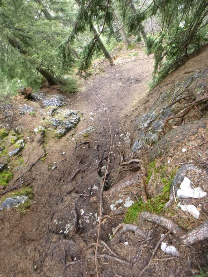 Abstieg. Auf selbem Weg wie aufgestiegen zurück in 1 Std. zum Trinkwasserbehälter und in 1¼ Std. zum Parkplatz.
