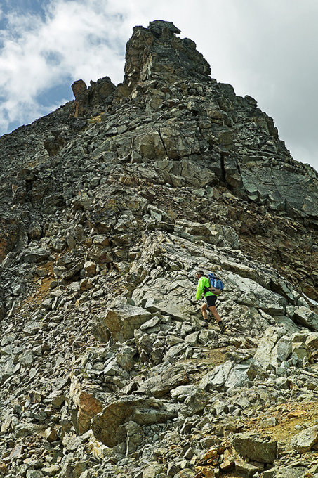 Nordgrat zum Vorgipfel und Ostgrat zum Hauptgipfel, vom Piz San Gian her